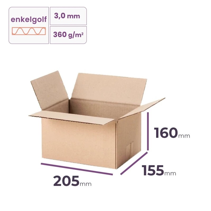 Kartonnen doos 205x155x160 mm - enkelgolf B/360