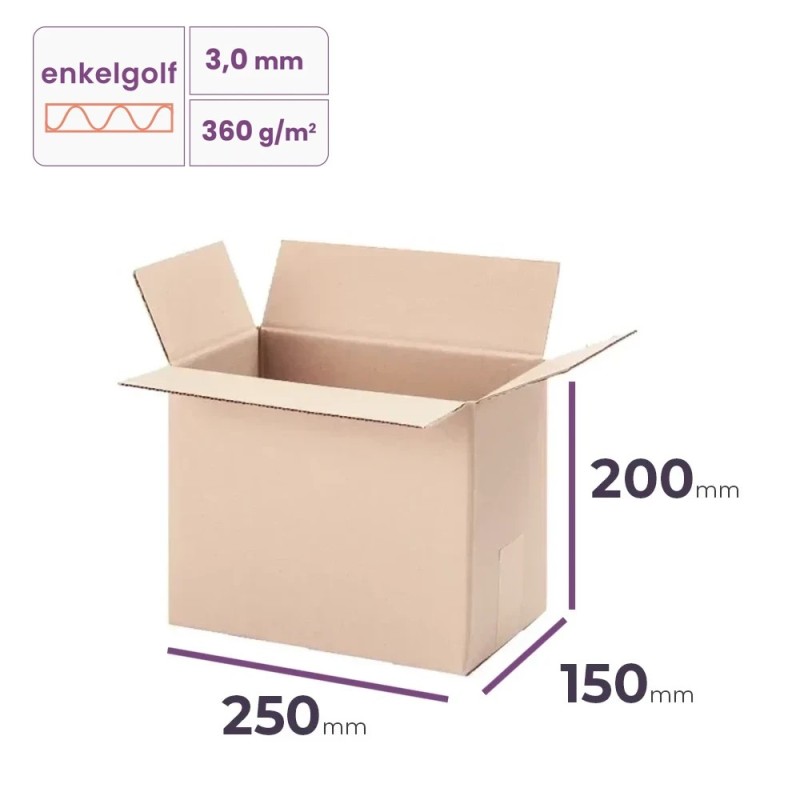 Kartonnen doos 250x150x200 mm - enkelgolf B/360