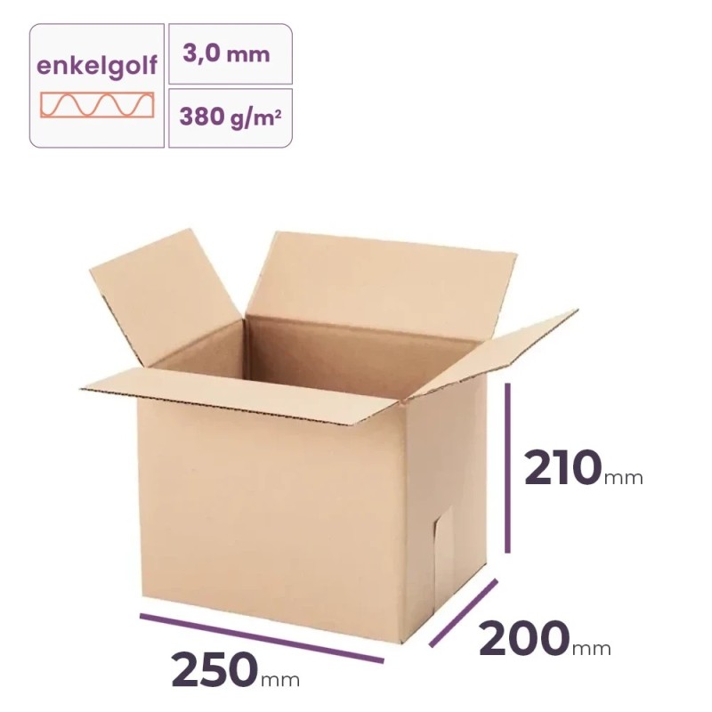 Kartonnen doos 250x200x210 mm - enkelgolf B/380