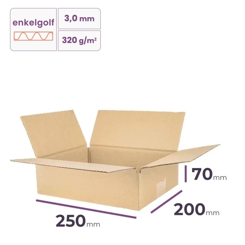 Kartonnen doos 250x200x70 mm - enkelgolf B/320