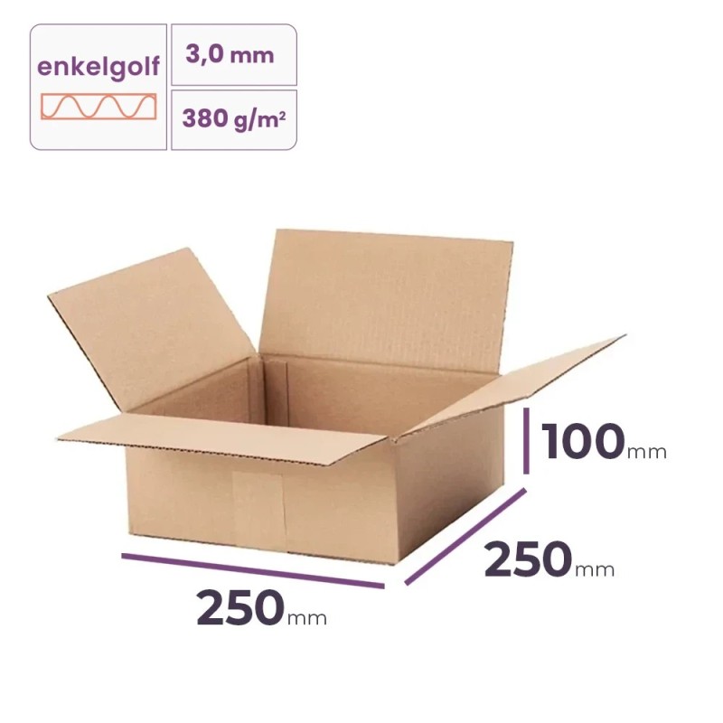 Kartonnen doos 250x250x100 mm - enkelgolf B/380