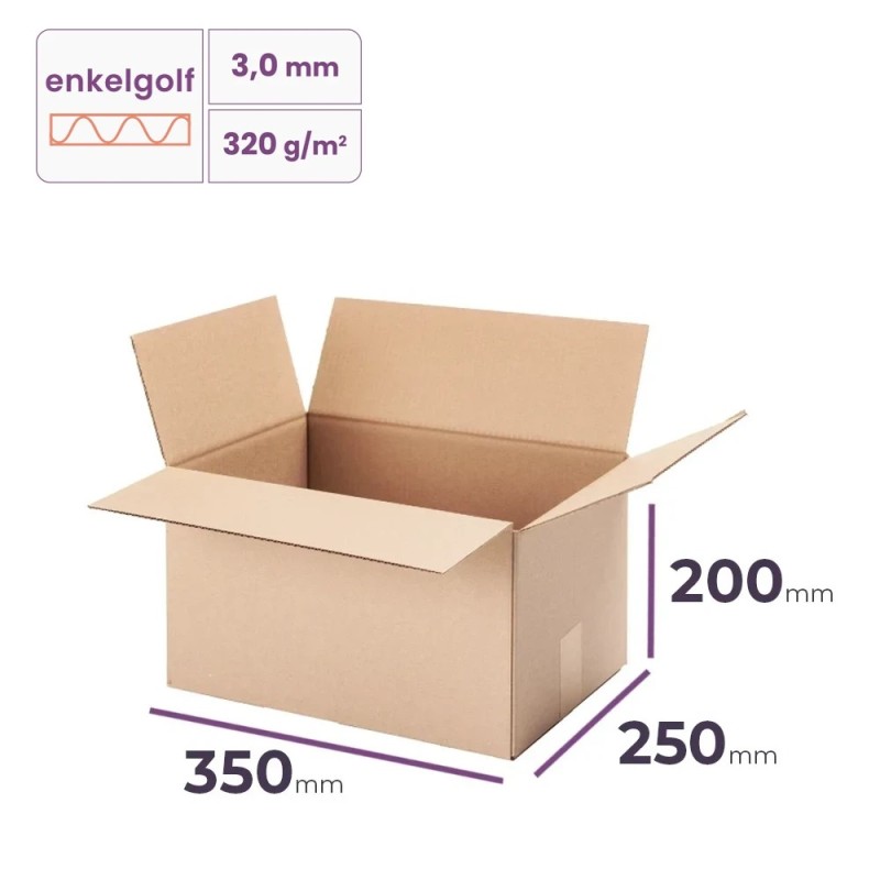 Kartonnen doos 350x250x200 mm - enkelgolf B/320