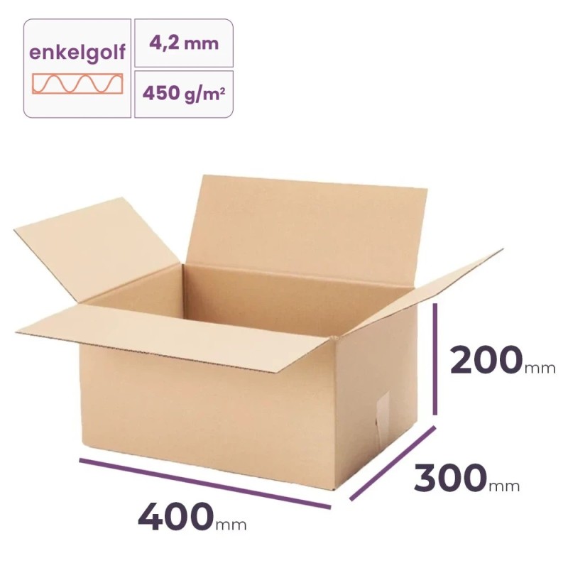 Kartonnen doos 400x300x200 mm - enkelgolf C/450