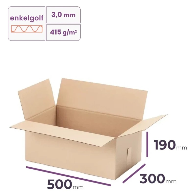 Kartonnen doos 500x300x190 mm - enkelgolf B/415