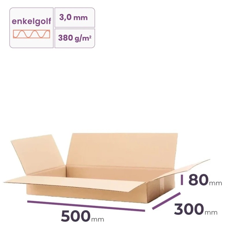 Kartonnen doos 500x300x80 mm - enkelgolf B/380